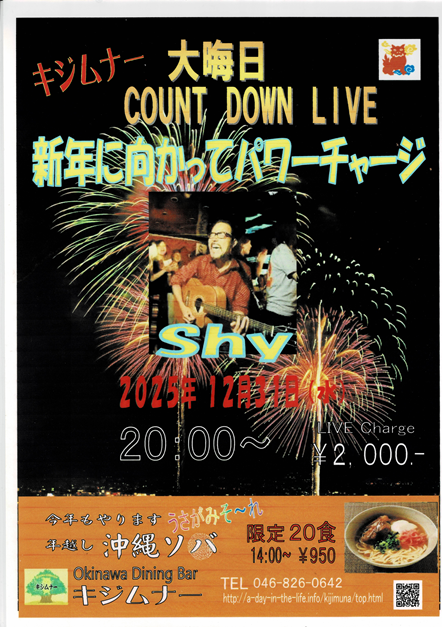 下記ライブ・イベントのお問い合わせは、キジムナー 046-826-0642まで